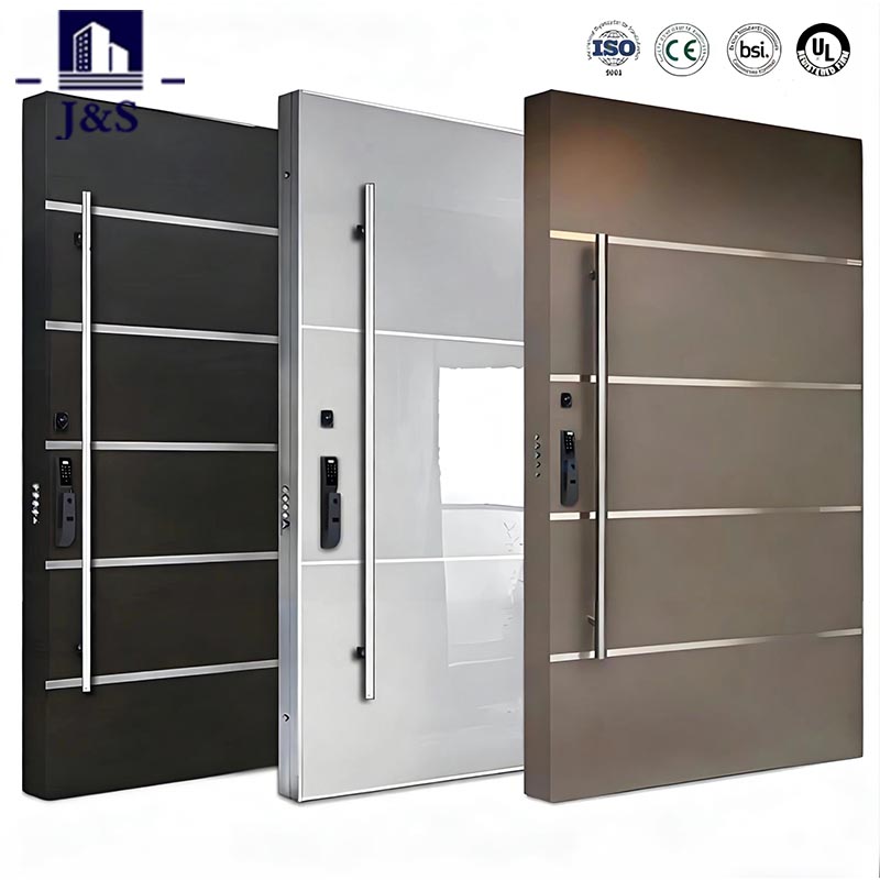 신뢰할 수 있는 중국 제조업체가 경쟁력 있는 가격으로 제공하는 J&S의 강철 안전 도어로 출입문의 수준을 높이세요. 강력한 보안과 현대적인 미니멀리스트 미학을 결합한 이 제품은 매끄러운 수평 금속 스트립과 내구성이 뛰어난 스테인리스 스틸 프레임이 특징입니다. 도난 방지 및 내후성을 위해 설계된 이 강철 안전 도어는 주거용 및 상업용 출입구 모두에 적합합니다. 세련된 무광 마감 처리는 현대적인 외관을 보완하며, 매끄럽고 청소가 쉬운 표면은 오래 지속되는 광채를 보장합니다. 가장 높은 안전 표준을 충족하며 출입구에 완벽하게 맞는 맞춤형 크기로 제공되므로 신뢰할 수 있는 공급업체 또는 공장 소스를 찾는 구매자에게 이상적인 선택입니다.